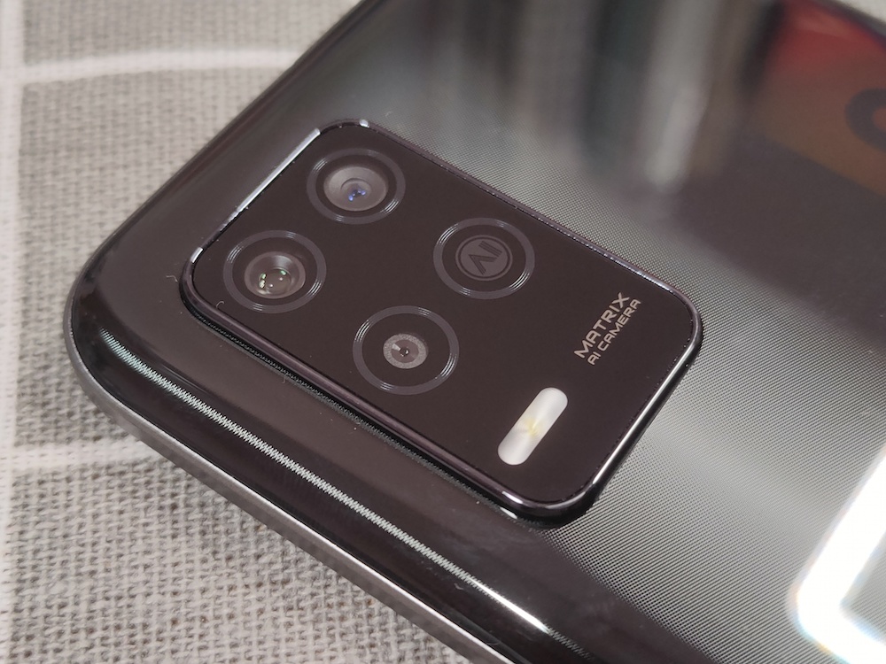 转到手机的反面,可以看到摄像组。真我Q3 搭载4800万流光人像三摄,4800万超清画质形式,供给拔尖的细节表现力;800万像素119°超广角镜头,单像素可达1.12μm。其能运用EIS数字防抖技能和高精度陀螺仪状况信息,结合AI算法,供给超安稳的视频录制功用。